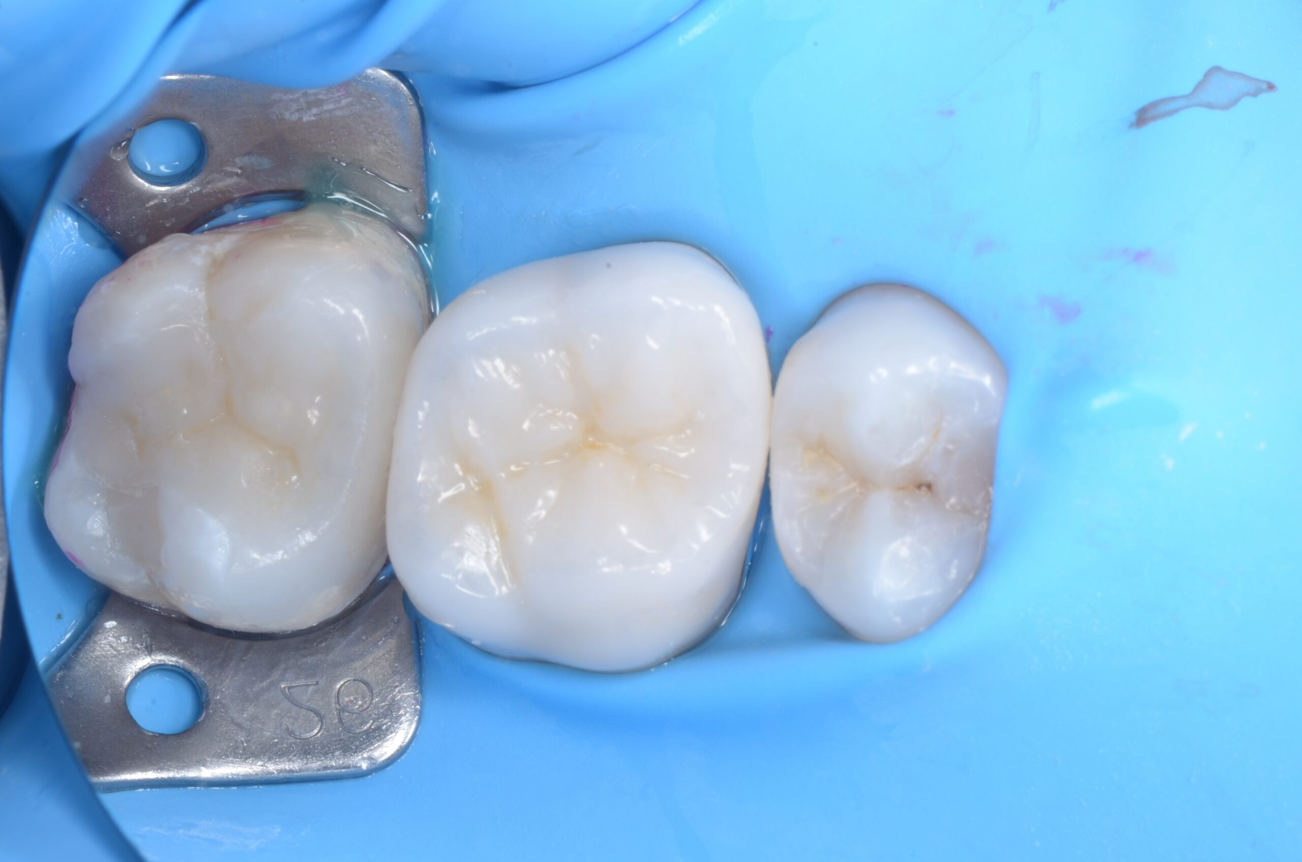 第二大臼歯『セラミックインレー』第一大臼歯は虫歯を除去後、『オールセラミッククラウン』にて治療をしております。